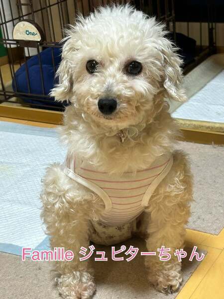 | その他(譲渡条件など) | *ご飯・おやつ 預かり当初は食べムラがありましたが、歯石取りをしてスッキリしたら全て完食するようになりました。おやつも大好きで、ちゃんとお座りして貰えるのを待ってます。 *排泄 ゲージ内ではきちんとシートの上で出来ますが、まだフリーはオムツが取れません。 *散歩 だいぶ慣れて歩けるようになりました。外で排泄も出来ます。 *他犬(猫)との様子 あまり他犬に干渉しないので、自分のペースで過ごしています。好きな子には自分から遊びに誘いに行きます。猫がいても全く気にしません。 *留守番・就寝 大人しくゲージの中で過ごせます。 *性格 生活面 遊び相手がいるとゲージの外に出て遊んでいますが、基本ゲージに戻って寝ています。 遊ぶ時は飛び跳ねて喜びを表現します。 |