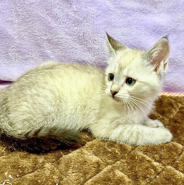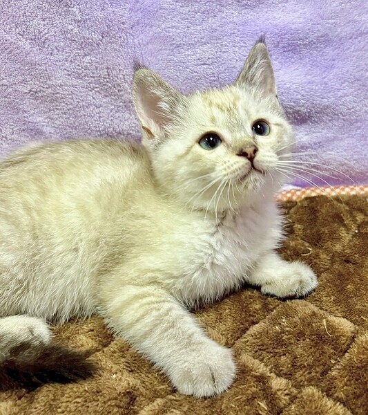 | 特徴(性格など) | 【仮名】ラテちゃん 【性格】ラグMIX&ブルーアイのラテちゃん♪ 将来有望な美しにゃんこです♪ タレ目でおっとり系の癒しにゃんこ(笑) でも兄妹のモカくんをリードする しっかりものの一面もグッド♪ 兄妹や同世代にゃんことの 一緒のお迎えをお願い致します♪ ※1ピキ譲渡応相談 |