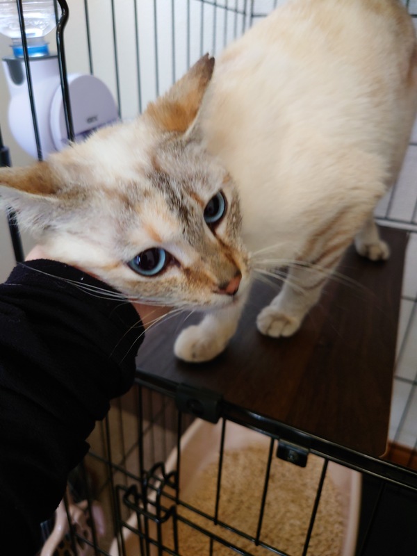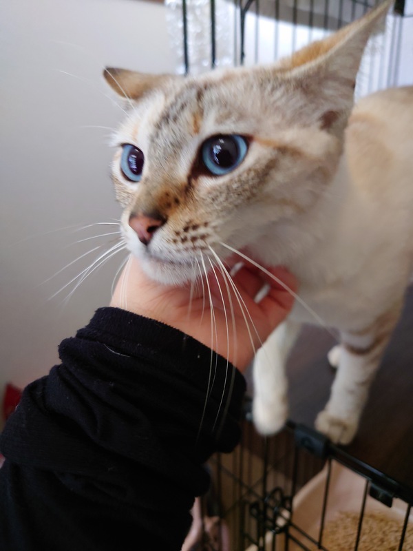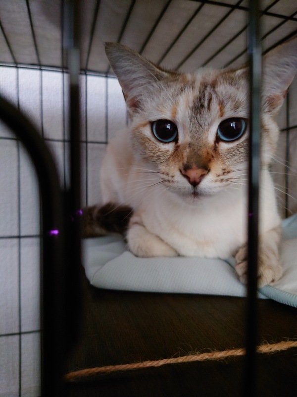| 特徴(性格など) | 【特徴・性格】 ブルーの瞳が綺麗な小柄な女の子です。 毛色は、全体的に淡いクリーム色で尻尾はこげ茶色です。 人に凄く慣れています。人を見ると足元に擦り寄って来ます。 攻撃的な事は無く、触るとゴロゴロと喉を鳴らして甘えてお腹を見せてくれます。 人に撫でられたり、ブラッシングされるのが大好きです。 ご飯も穏やかに食べてくれます。 病院やトリミングサロンでも暴れずに大人しくしてくれます。 保護してからトイレの失敗は一度もありません。 床や壁などを引っ掻くことも、今のことろありません。 当方の自宅に居るワンちゃんにも友好的に接してくれます。 【健康状態】 獣医師の見立てでは1歳〜2歳とのことです。 外傷なども無く元気です。 避妊済みです。(耳カットあり) ノミダニ駆除薬投与済み。 条虫駆除の注射済み。 目やには全くありません。 トリミングサロンでシャンプー済み。 今後病院でワクチン接種、ウイルス検査を予定しています。 |