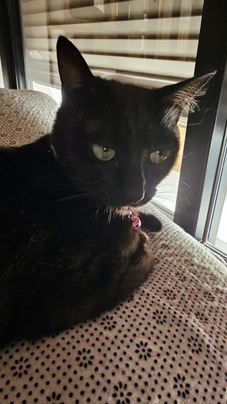 | 特徴(性格など) | 首もととおなかに白毛がある黒猫で とてもおとなしく、おっとりとした性格です (おながすいたとき以外) 猫エイズ陽性です |