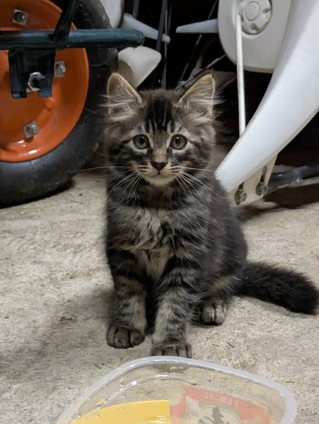 | 特徴(性格など) | クロシマ(おそらくオス):食欲·好奇心ともに旺盛。自己アピール強め。 キジトラ①(おそらくメス):食欲は旺盛だが、少し臆病。キジトラよりは三毛っぽい柄。 キジトラ②(おそらくメス):かなり臆病でいつも兄妹の後ろに隠れている。ご飯の時にも姿を現さないことがしばしば。 |