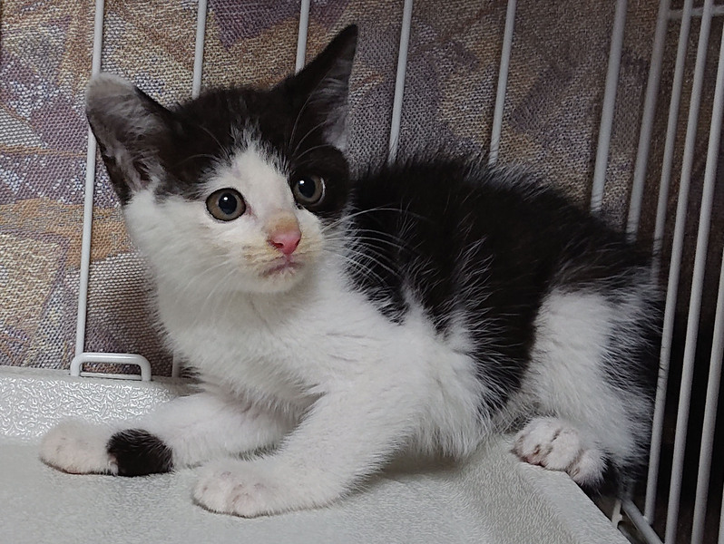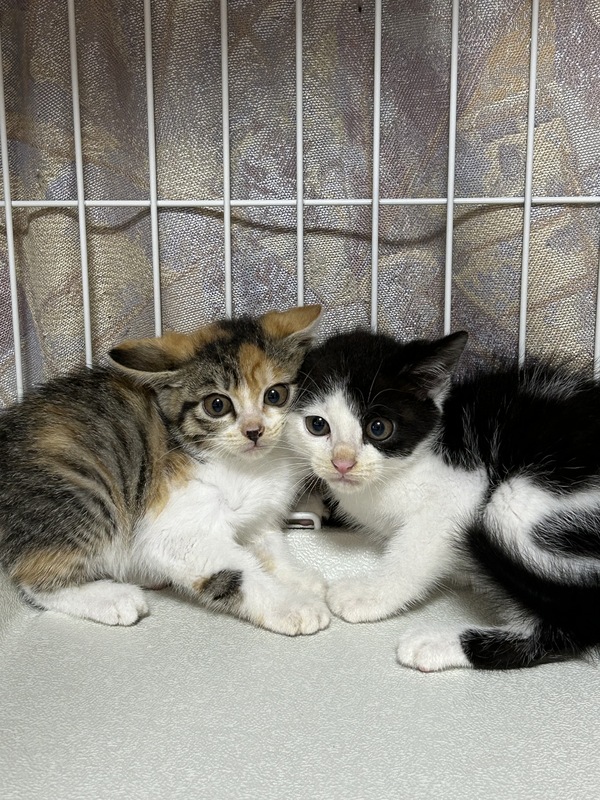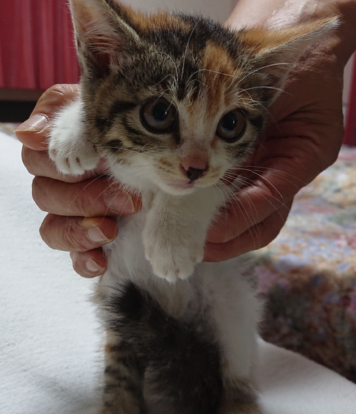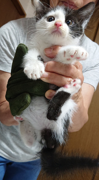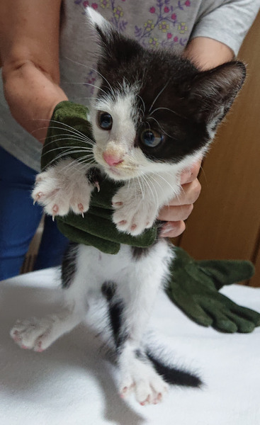 | 特徴(性格など) | 色柄:白黒猫(尻尾:長い)・三毛猫(尻尾:短め) 性格:大人しい。驚いたりするとシャーッと小さく威嚇します。 抱っこができます。 健康状態:良好 エイズウイルス・白血病:近日中に検査予定 |