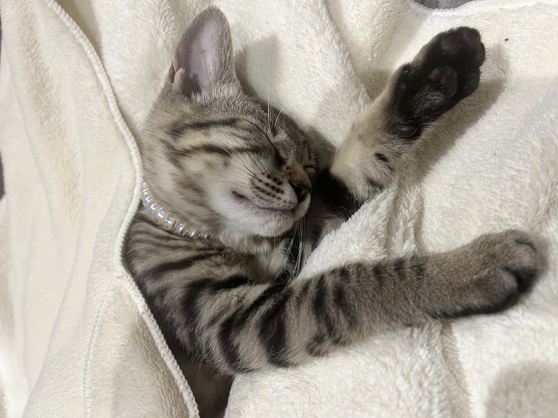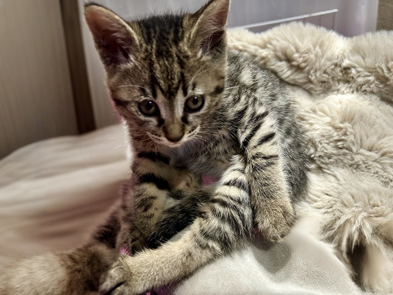 | 特徴(性格など) | ◆性格や特徴 比較的大人しい性格だと思います。 ご飯をよく食べて、その後数時間遊んだら寝ます。 トイレは覚えているので失敗はありません。 すぐにスリスリしてそばにくっついて来ます。 朝はぺろぺろ顔をなめて起こしてくれます。 一緒に寝てくれるのでとても癒されます。 ◆健康状態 保護してすぐに病院に連れて行きました。 健康状態は良好です。 ノミダニ駆除済。 |