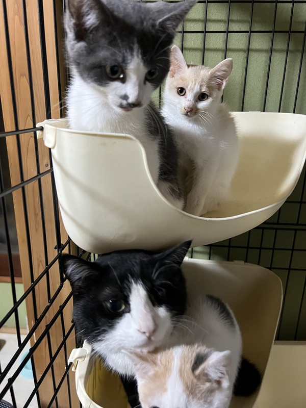 | その他(譲渡条件など) | 写真1枚目の茶白の子のみ里親様募集しています。 ビビりでうちに来た当初は噛みつき威嚇引っ掻き、大声で鳴くことがありましたが、今はだいぶ人馴れしていてなくなりました。 最初は同様な問題が起きると思います。 うちでは1週間ほどで慣れてくれました。 いまは、犬や猫たくさんのお兄ちゃんお姉ちゃん達と生活していて人より動物達を信頼しているようです。 健康状態 カリカリのフードを沢山食べ、元気に遊んでいます。 引き渡し方法 居住環境を確認するという目的も合わせて、こちらからお家にお渡しに行きます。 千葉県市原市で保護しています。 お渡しに行く際にかかる交通費(高速代)のご負担だけお願いしております。 遠方の方はご理解の上問い合わせください。 その他・備考 元野良猫なので警戒心がとても強いです。 慣れるまでは上記のような問題があると思いますが、子猫なので1週間ほどで慣れてくれるとは思います。 優しく受け入れて向き合ってくれる里親様を探しております。 今は人より動物が一緒にいた方が安心するようなので、先住猫や犬がいるご家庭を優先させていただきます。 単身者やパートナーシップを結んでいる方、お子様がいらっしゃる家庭など幅広く応募可能としますが、こちらの質問に丁寧にお返事してくださる方、譲渡後1ヶ月はまめに、それ以降は1ヶ月に1回以上連絡をくれる方がいいと思っています。 連絡の内容は病院行ったよー、こんなことしてたよー、こんなことできるようになったよー、この写真可愛いでしょ!などうちの子自慢でも雑談でも構いません。 この子がどんな生活をしていて幸せなのかそっと見守りたいだけなので???? こちらから提示するお約束は必要最低限です。 〇必要な時は病院に行ってください。 〇必要な栄養は確保してあげてください。 〇お水は綺麗で新鮮なものを! 〇家族として幸せにしてあげてください。 〇里親様も心に余裕を持ち健康で幸せパワーを沢山貰ってください。 〇もし飼えなくなってしまうかもしれない、という時は可能性が少しでも出てきた時点でご相談ください。 たくさんの問い合わせが予想されます。 すぐにお返事出来ないかもしれませんが必ず全ての問い合わせを確認するのでお返事が来るのをお待ちください。 他のサイトでも募集を行っております。 連絡とっているからと言って必ず里親になれるわけではございませんことをご理解ください。 少しでもこの子が気になったり、不明な点がございましたら気軽にお問い合わせ下さい。 よろしくお願いします。 |