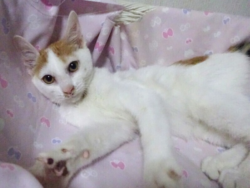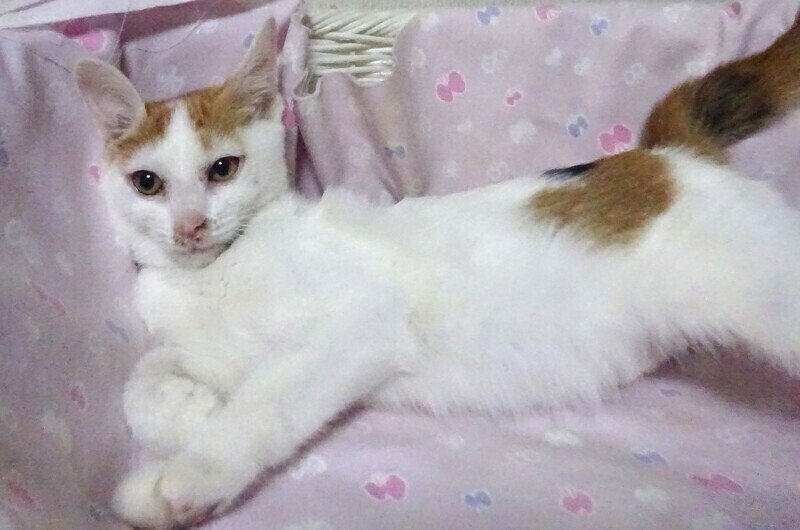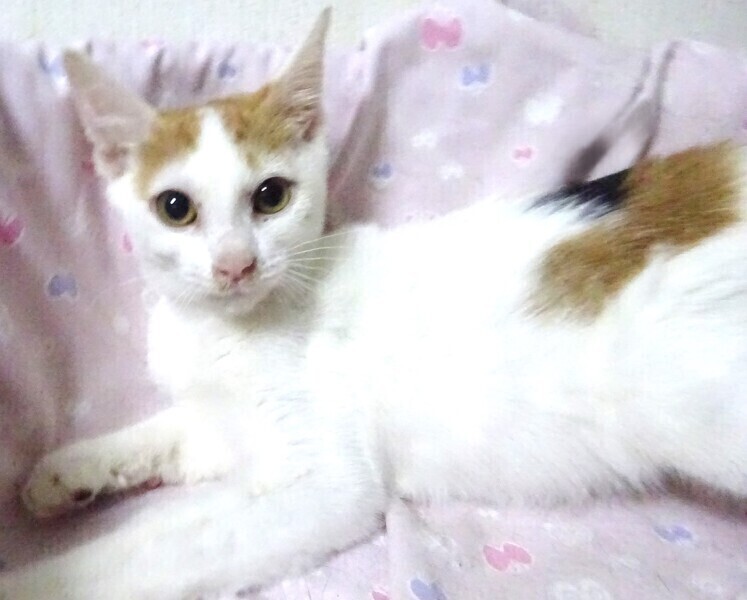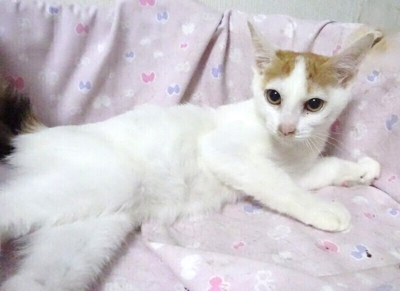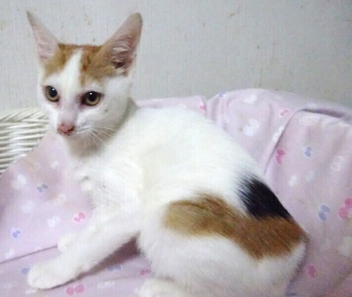 | 特徴(性格など) | 仮名: 杏樹ちゃん、メス 毛色: 白が多い三毛、尻尾ながい 性格: 保護して日が浅いため、個性ははっきりとわかりませんが、保護時は軽く威嚇していた事もあり、ビビりの面はあると思います。今は、触っても抱っこしても威嚇することはありません。 兄弟がいたかはわかりませんが、餌やり宅のベランダで産まれて育ち、多数の猫が出入りしていましたので、大人猫は知っています。 そこで猫社会の学習は少し出来ているかと思います。 一人なので、激しい遊びもしませんし、いつも大人しくしています。 お届けは千葉県内で千葉市幕張から車で1時間位を希望しています。 検便済 駆虫済 3種混合ワクチン済 猫エイズ・白血病ウィルス検査は共に陰性です |
