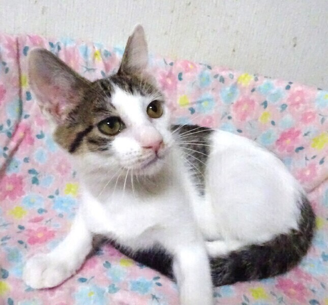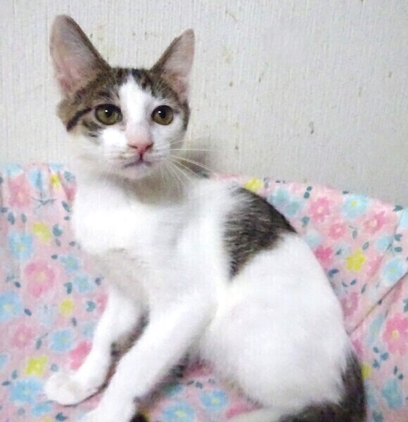 | 特徴(性格など) | 仮名: 風(ふう)くん、 オス 毛色: 白キジ 性格: 兄弟の中では一番のビビりで、保護時は威嚇したり、奥に逃げたりしていました。最近は飛んで逃げる事はなくなり、威嚇もしなくなりましたが、兄弟の波くんよりも逃げ腰です。 抱っこすると脱力して喉を鳴らしてくれます。 ご飯大好きで、騒いで催促します。兄弟(風、波)とは仲良しでプロレスしたりしていますので、一緒のご縁があると嬉しいです。 大人猫との接触はなく上手く付き合えるかわかりませんが、ケージ越に姿は見ています。 同月齢の子猫とは遊んでいます。お届けは千葉県内で、千葉市幕張から車で1時間位を希望しています。 検便済 駆虫済 ワクチン済 去勢手術済 猫エイズ・白血病ウィルス検査は共に陰性です |