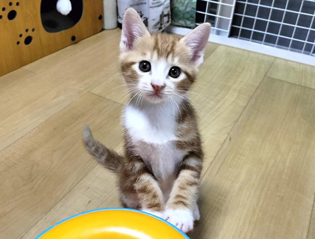 | 特徴(性格など) | ☆☆☆ご希望の方は、以下のアンケートフォームにご記入の上、送信してください☆☆☆ ねこ親希望アンケート→ http://chibawan.net/contactform_cat 【猫No】3931 【愛称】 サン 【性別】 オス 【年齢】 推定1.5ヶ月(25/7/4現在)(25/5/19頃生) 【毛色】 茶シロ 【体重】 0.8kg(25/7/4現在) 【状態】 ワクチン1回済(25/7/1)、血液検査(猫エイズ陰性・猫白血病陰性)、ノミダニ駆除済、駆虫済、トイレ躾済 【預かり場所】 千葉県船橋市 【日記】 https://www.instagram.com/jasmine81865/ 【経緯】 千葉県動物愛護ふれあいセンターより引き取り 【性格】 甘えん坊の茶シロ男子です。ミルクから育てましたのでとても人馴れしています。 兄弟そろってとっても可愛いお顔でアメショっぽい柄がチャームポイントです。 シッポは真っすぐでとても綺麗です。 ちょっとのんびりした所があり、一度寝ると中々起きません。甘えん坊の弟キャラです。 一緒に保護された兄猫とニャンプロしたりおもちゃを追いかけたり元気に仲良く遊んでいます。 お留守番も出来ますし、夜はケージで大人しく寝るお利口さんです。 【補足事項】 兄弟猫のセット(茶トラ・オス)と一緒にお迎えして下さる里親さんを募集します。 仲良しの兄弟なので一緒ならお留守番も寂しくなくて安心です。 ※1匹のみご希望の場合は恐れ入りますが他の猫ちゃんをご検討下さい。 大変申し訳ございませんが、仔猫のためお一人暮らしやご高齢の方のみのご世帯はお申込みをお断りさせて頂きます。 また長時間お留守をされるご家庭の場合も、条件によってはお申し込みをお断わりさせていただく場合がございます。 ※お試し生活は、不妊手術などの医療処置が全て完了してからとなります。 (8月中旬手術予定) 【その他】愛情いっぱいの終生飼養、ネコにあった生活スタイル、完全室内飼育、脱走・迷子防止対策、定期的なワクチン接種などの健康管理をお約束いただける、千葉県船橋市から1時間以内のご家庭で、アンケートに快くお答えいただける方からのお問い合わせをお待ちしています。 |