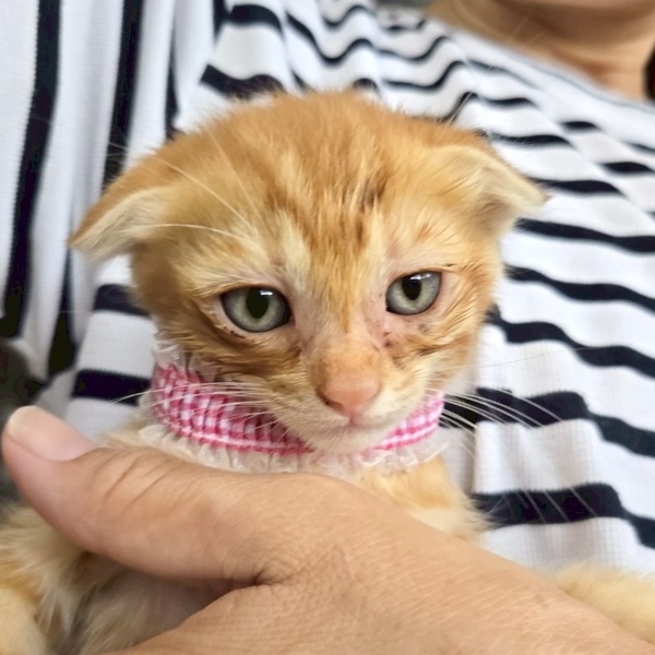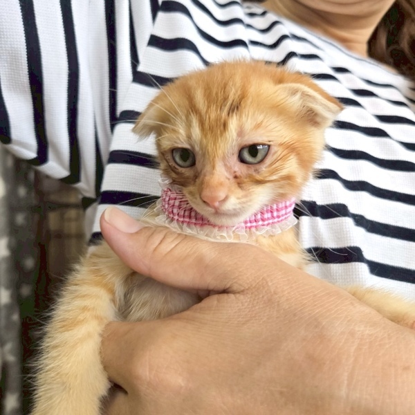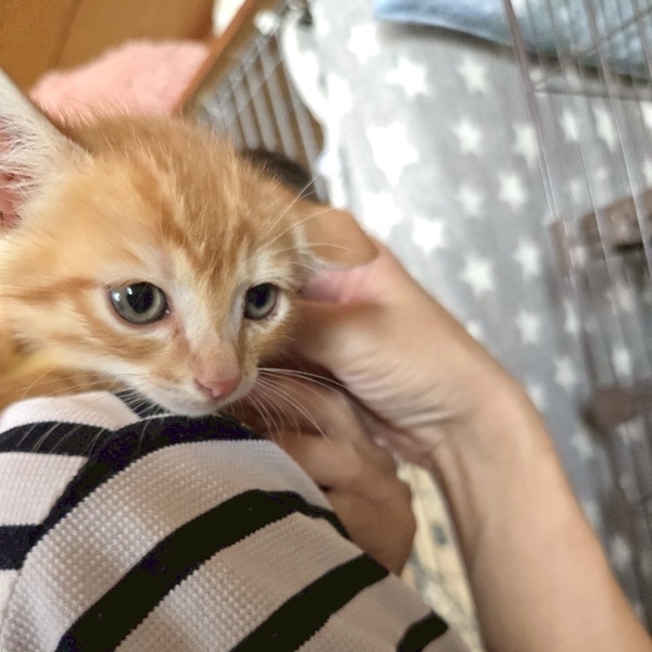 特徴(性格など) | 茶トラの子猫、いちとくん。 お母さん猫・きょうだいたちと一緒に保護しました。 お母さんも耳が垂れているため、スコティッシュ系と思われます。 お外で生まれた子ですが、だっこさせてくれます。 きょうだいたちと仲良くじゃれあいながら過ごしています。 いちとくんを温かく迎えてくださる方を探しています! 少しでも気になられましたら、お気軽にご連絡くださいね。 |
