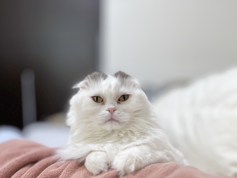 | 特徴(性格など) | 猫種→スコティッシュフォールド 色柄→ホワイトにグレー 性格→穏やかで、昼間は窓際でずっと日向ぼっこをしています。飼い主が寝ようとすると、ゴロゴロふみふみをして、添い寝をしてくれる優しい子です。 エイズや白血病等の大きな病気はありません。 毛が細く絡まりやすいため、里親さんが見つかり次第、トリミングをさせていただきます。 |