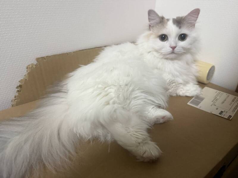 | 特徴(性格など) | 長毛短足マンチカン(キャリコ)の女の子 パステル三毛が上品です。 気づいたら近くに居てくれる大人しくマイペースで甘えん坊な性格です。人のあとをついてきたり、一緒に寝たり、慣れてくるとお腹の上に乗ってきたりします。人がとても好きな猫ちゃんです。普段はおっとりしていて短い足でヨチヨチ歩いてますが、美味しいものが大好きでチュールなどを出すと飛んできます。 少し気が強い一面もあり、ブラッシングは得意ではないのでチュールあげながらブラッシングしています。毛玉になりやすく、抜けやすいので毎日のブラッシングが必要にはなります。 |