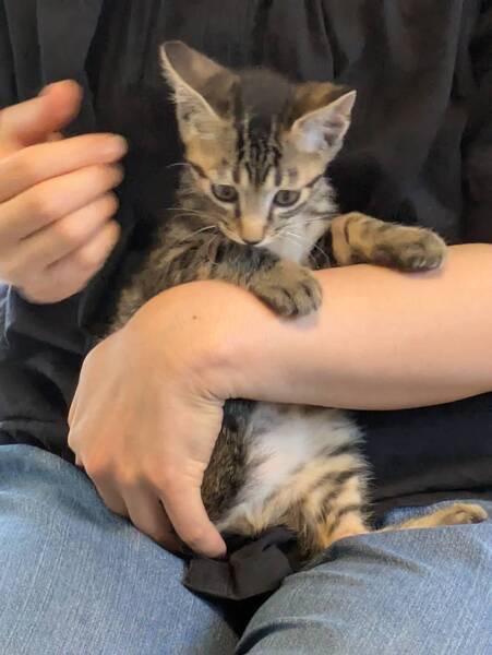 | 特徴(性格など) | 色柄 キジトラ 性格 よく人馴れしていて、すりすりゴロゴロとします。ふみふみもしてきます。 兄弟で遊ぶのも大好きで活発です。 生後一か月半くらいの時点でエイズ検査陽性です。 駆虫 去勢手術済み ワクチン7月中旬に2回目接種予定 |