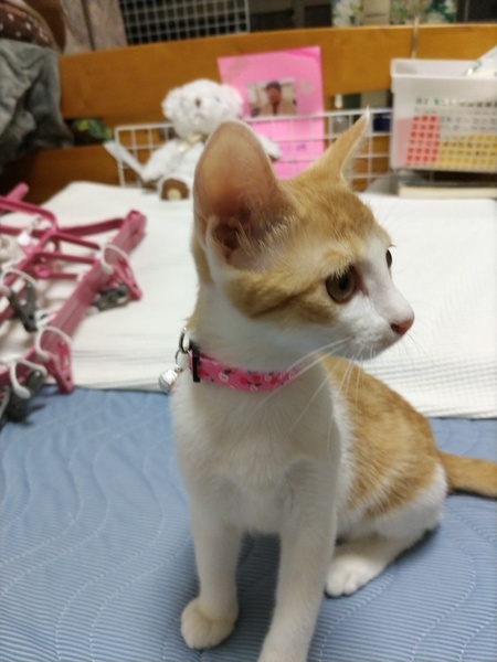 | 特徴(性格など) | 茶白 3ヶ月 細身(保護が遅れた為に他の兄妹より細身です。) 慎重派のビビリでず |