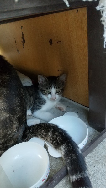 | 里親募集する理由 | 6月の末ごろにノラの母親猫が、2匹の子猫を我が家の庭に連れてきました。我が家では、腎臓病の老猫を室内飼いしています。なのでこれ以上飼い猫を増やせなく里親さんを募集いたしました。7月22日現在、生後3ヶ月くらいと思われます。動物病院で検査を受診していませんが、見た目的には普通だと思われます。尚、左記の事情のため子猫は現在も外飼いをしています。追伸➡️兄弟猫は、7月21日に里親さんが決定しました。 | ||