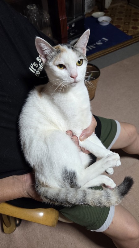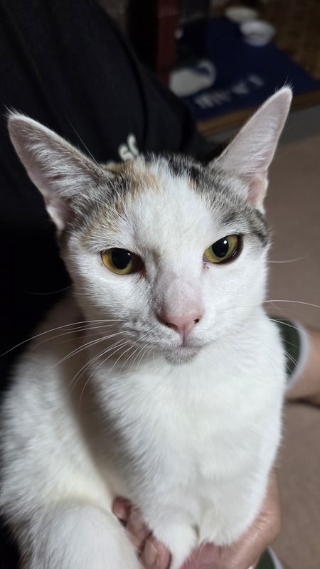 | 特徴(性格など) | 白い毛の多い美人さんの三毛猫ちゃん 優しくて可愛い子です やんちゃな面もあってギャップ差がいい! |