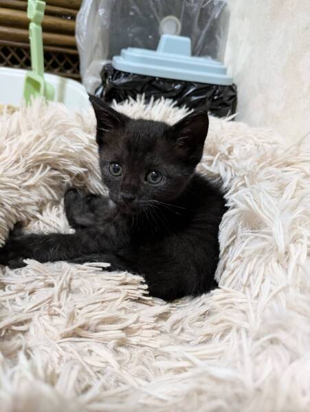 | 特徴(性格など) | 柄:珍しいブラックスモーク、黒キジ、黒トラ、まろ眉(白) 面会に来られてご確認をお願いいたします。 元気に走り回ってます。トイレ躾済み。餌はドライフードを食べています。膝の上に乗ってきたり、横になっていたら背中に乗ってきたり、付いて回り可愛いです。8時間程度のお留守番できます。 |