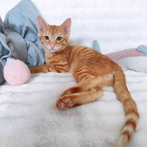 | 特徴(性格など) | 【仮名】キングくん 【性格】みんなが大好き茶トラ男子のキングくん☆ 強そうな名前ですが実は抱っこ抱っこの甘ったれちゃんなんです(笑) ゴハンのおねだりが特徴的で「ね〜っ!!」と 叫ぶのがとても可愛いですよw 遊ぶ時は持久力がある子なので心配になるくらい走り回って 疲れて眠くなると赤ちゃんになります(笑) 兄妹のクインちゃんと共にお迎え頂けると嬉しいです♪ ※1ピキ譲渡応相談 |