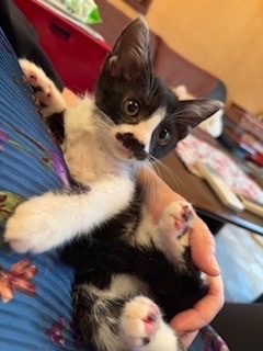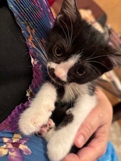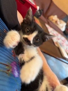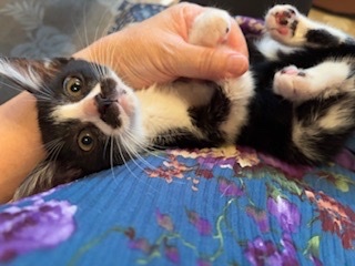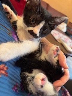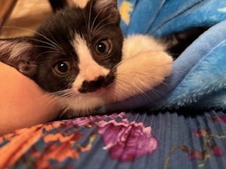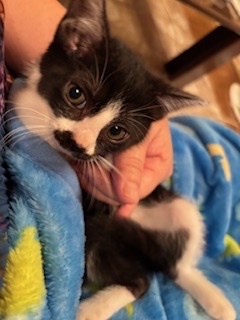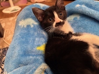 | 特徴(性格など) | <初期医療> エイズウイルス検査:陰性 白血病ウイルス検査:陰性 ワクチン接種:済み ノミ・ダニ駆除薬:済み 糞便検査:済み 推定1.5ヶ月の黒白ハチワレの男の子です。とても甘えん坊で、よく食べ、よく寝て、よく遊んで可愛いです。お髭みたいな模様がチャーミングなイケニャンです。小さな子猫なので、お留守番の無いお家や先住猫ちゃんがいるお家を希望します。 |