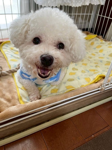 | 特徴(性格など) | ■特徴(仮の名前:レオ) ビションフリーゼ♂ 推定5~6歳 体重9キロ(肥満) ■性格・暮らし ・ビションフリーゼらしく陽気で快活です。 ・おトイレは練習中です。 ・お散歩は好きなようでよく歩きます。 ・適正体重(8キロ)まで減量が必要です。散歩等の運動量を増やし積極的に減量を目指していただける方を希望します。 ■今までに行った医療行為 ・避妊手術 ・検便 ・血液検査 ・ワクチン接種 ・マイクロチップ装着 ・フィラリア検査(-) ■今後行う予定の医療行為 ・なし |