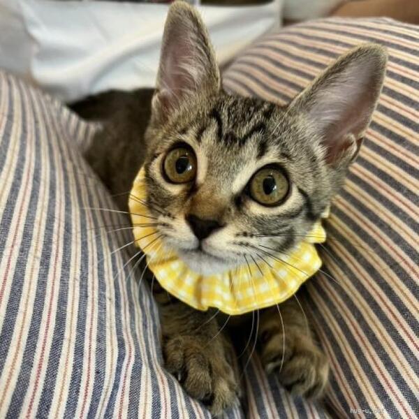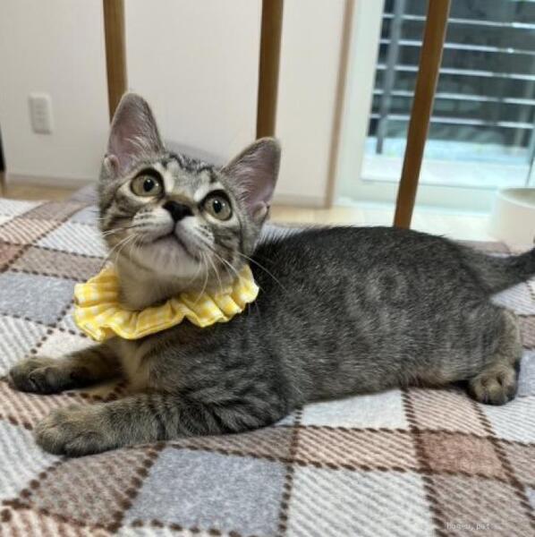 | 特徴(性格など) | ◆ジアナちゃん 少し引っ込み思案なキジトラ子猫 ●月齢の小さな子猫は、以下の条件についてご了承の上で応募をご検討下さい。 ◆お留守番の少ないご家族、 ◆横浜市青葉区内もしくは近郊にお住まいのご家族、を希望します。 ◆2頭でお迎えくださるご家族を優先いたします。 ◆小さなお子様のいるご家庭は状況によりお断りする場合がございます。 ◆高齢者のみのご家族からの子猫のお申し込みはお受けしていません。 ○香川県内にて保護しました。 ○生後2ヶ月半くらい(2025年7月中旬時点)のキジトラの女の子です。体重は1.05kg(2025年7月17日時点)です。 ○尻尾は長くてまっすぐです。 ○同じく里親募集中の「ノース」、「ダコタ」、「ネバダ」は一緒に保護された兄妹です。 ◯兄妹の中では一番臆病な子です。 ◯他の兄妹が遊びに行ってしまうと寂しくて鳴きます。 ◯他の猫ちゃんよりも人が大好きで、よく膝の上を占領して機嫌良くしています。 ◯食欲旺盛、おもちゃ遊びも大好き。 ◯人大好き、ナデナデ大好き。 ◯元気にすくすく育っています。 ★ワクチン1回接種済み。 ★猫エイズ、猫白血病ともに陰性。 ★不妊手術は成長と体調をみて実施予定です。 ☆単身のかたはご相談ください。 ☆★☆★☆★☆★☆★☆★☆★☆★☆★☆★☆ ~8月10日(日)新山下にて譲渡会開催!~ ◎場所・・「島忠ホームズ 新山下店」 神奈川県横浜市中区新山下2丁目12−34 JR根岸線「桜木町駅」より横浜市営バス(8.26.58.148系統)乗車「貯木場前」より徒歩約5分 みなとみらい線「元町・中華街駅」より徒歩約15分 ◎日程・・8月10日(日)(雨天決行) ◎時間・・12時から15時 【14時30分受付終了】 (会場に利用可能な無料駐車場がございます。そちらをご利用くださいませ。) *混雑状況により、制限させて頂く場合がございます。 ※参加予定の犬猫は体調により参加できない場合があります。ご了承ください。 ☆★☆★☆★☆★☆★☆★☆★☆★☆★☆★☆ |
