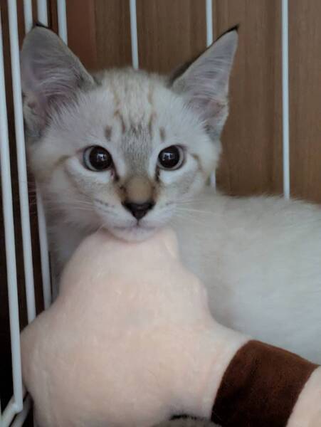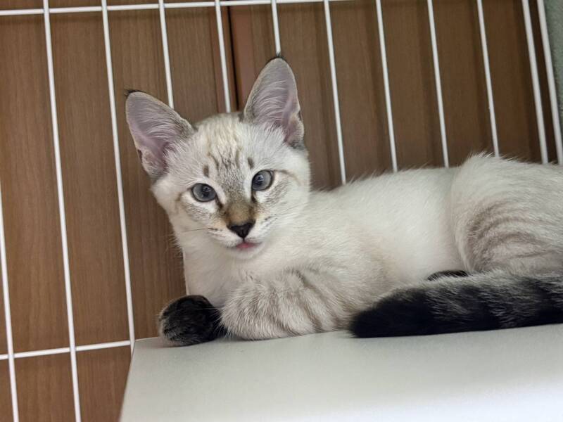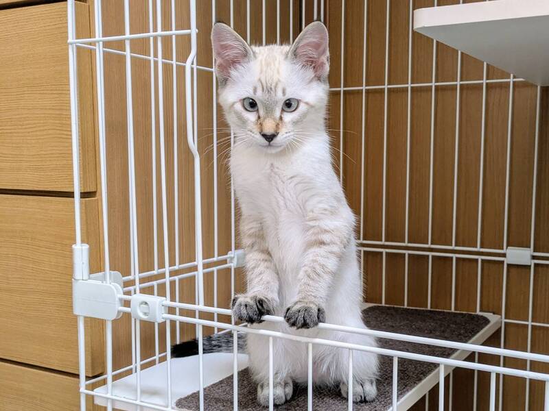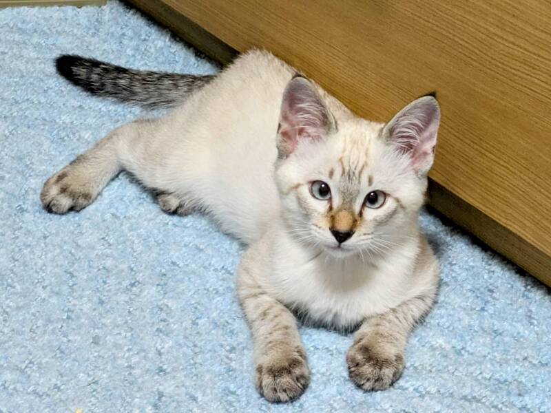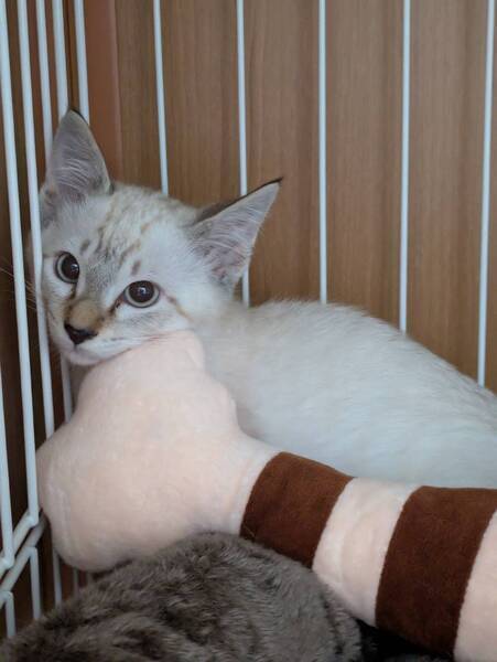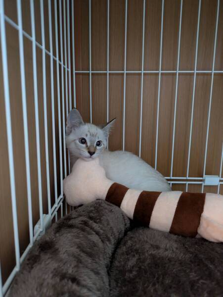 | 特徴(性格など) | トライアルがキャンセルになり再募集。 綺麗なブルーアイズのシャムトラ君。 ひとり遊びが上手で元気に走り回ってます。 撫でられるとゴロゴロ音を鳴らします |