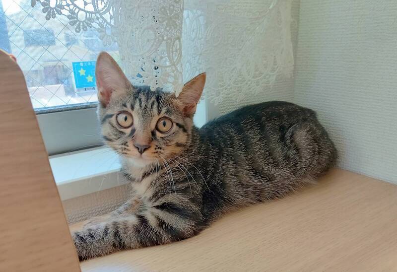 | 特徴(性格など) | 小柄ボーイで、元気いっぱい! 最近はかなり人に慣れてきて自分から甘えに来ます。 凄い小柄ですが、食いしん坊で何か頂戴といつも鳴いて訴えてきます、猫とも仲良し性格抜群! |