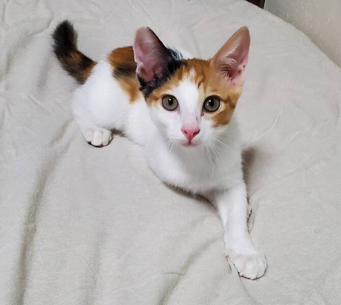 | 特徴(性格など) | ◆せなちゃん とにかく元気いっぱいな白地三毛子猫 ●月齢の小さな子猫は、以下の条件についてご了承の上で応募をご検討下さい。 ◆お留守番の少ないご家族、 ◆横浜市青葉区内もしくは近郊にお住まいのご家族、を希望します。 ◆2頭でお迎えくださるご家族を優先いたします。 ◆小さなお子様のいるご家庭は状況によりお断りする場合がございます。 ◆高齢者のみのご家族からの子猫のお申し込みはお受けしていません。 ○川崎市内にて乳飲み子の時に保護しました。 ○生後2ヶ月半くらい(2025年7月中旬時点)の白地三毛ハチワレの女の子です。 ○尻尾は長くてまっすぐです。 ○目尻のアイライン柄と右耳の黒斑がチャームポイントです。 ○同じく里親募集中の「あゆむ」、「るか」は一緒に保護された兄妹です。 ◯兄妹たちといつもニャンコプロレスしています。 ◯好奇心旺盛で、興味のあるものにはどんどん挑戦していきます。 ◯凄い甘えん坊。ナデナデを強要してきます。 ◯人にも猫にも慣れています。 ◯元気にすくすく育っています。 ★ワクチン1回接種済み。 ★猫エイズ、猫白血病ともに陰性。 ★不妊手術は成長と体調をみて実施予定です。 ☆★☆★☆★☆★☆★☆★☆★☆★☆★☆★☆★☆★☆ ~7月20日(日)市ヶ尾にて譲渡会開催!~ ◎場所・・東急ドエル市ヶ尾プラーザビル2階集会 神奈川県横浜市青葉区市ヶ尾町1154-2 田園都市線「市ヶ尾」駅西口より徒歩約2分 ◎日程・・7月20日(土)(雨天決行) ◎時間・・ 12:30~14:30 (会場に利用可能な駐車場はございません。近隣のコインパーキングをご利用ください。) *参加の際は、アルコール消毒のご協力をお願いいたします。 *混雑状況により、入場制限をさせていただく場合がございます。 ※参加予定の犬猫は体調により参加できない場合があります。ご了承ください。 ☆★☆★☆★☆★☆★☆★☆★☆★☆★☆★☆★☆★☆ ☆単身のかたはご相談ください。 |