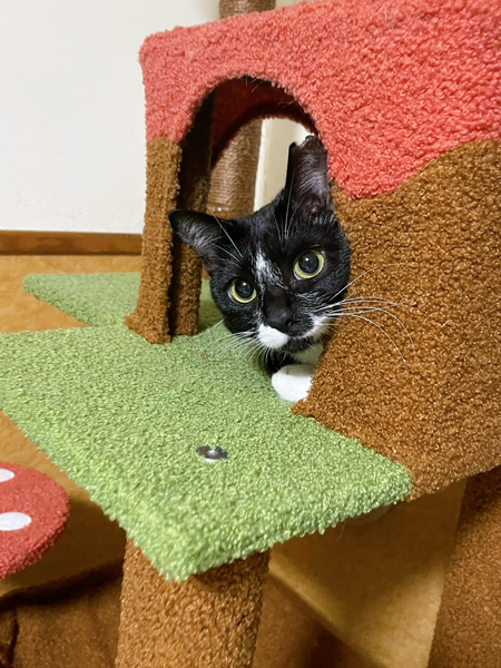 | 特徴(性格など) | 特徴 ・短毛 ・黒白柄 ・顔の模様 ・白い靴下を履いているような柄(前足) 性格 懐っこく甘えん坊な女の子で一緒に寝ています。 多頭(10匹)の猫と生活していますが、他猫との喧嘩もありません。 |