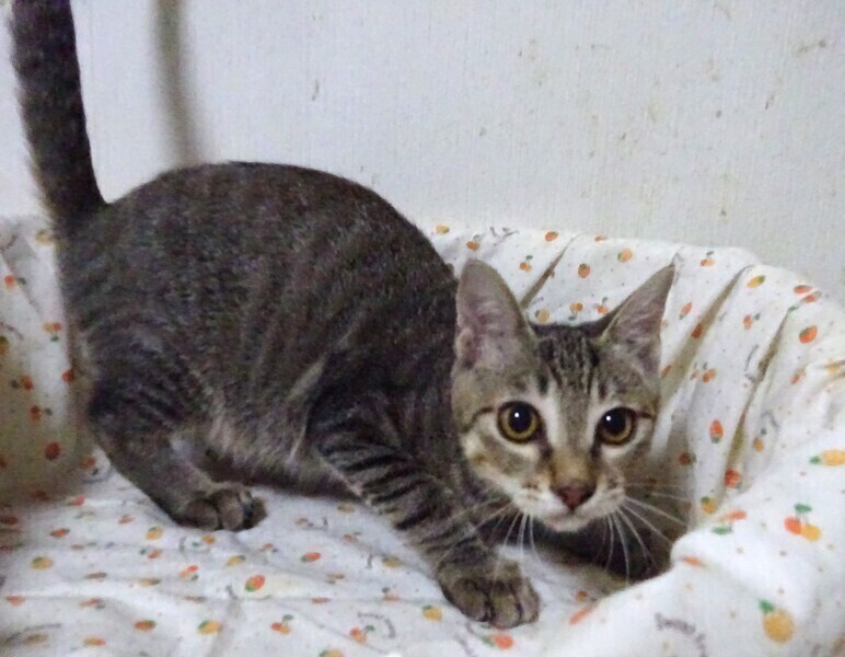 | 特徴(性格など) | 仮名: 涼真くん、オス 毛色: キジトラ 性格: 保護時から威嚇はなく、攻撃性もなく、触っても怒らない感じでした。 遊びなのか、手を出すと逃げる素振りを見せるのに、扉をしめようとすると寄ってきて触ろうとしたりします。 抱っこすると喉ゴロゴロで病院でも診察出来ません。人は好きみたいなので、甘えん坊になると思います。 猫社会の学習が出来ているかどうかがわかっていません。 大人猫との接触はまだありません。 一人でも活発に遊んでいます。 好奇心も旺盛です。 お届けは千葉県内で千葉市幕張から車で1時間圏内でお願い致します。 検便済 駆虫済 ワクチン済 去勢手術済 猫エイズ・白血病ウィルス検査は共に陰性です |