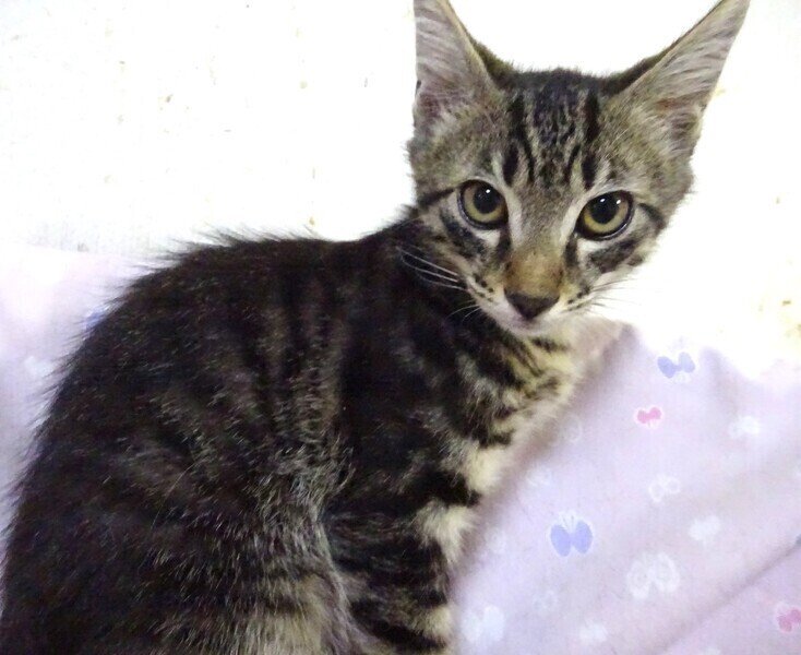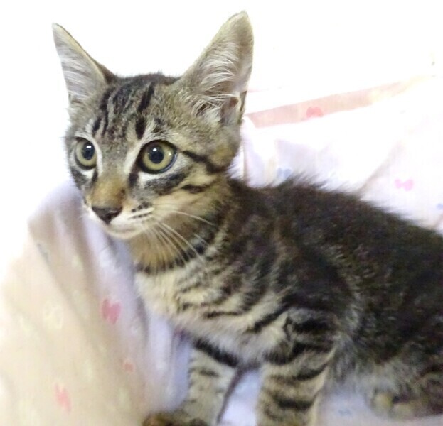 | 特徴(性格など) | 仮名: アルトくん、オス 毛色: キジトラ、短め尻尾 性格: 保護時は激しく威嚇していたので、怖がりだと思います。 3兄弟全員が怖がりのようです。 ただ攻撃性がないので、触れますし、威嚇なく抱っこ出来、爪切り、薬は大丈夫です。 抱っこすると最近は気持ちよさそうにしている感じです。 馴らすのに少し時間はかかると思いますが、馴れたら甘えてくれると思います。兄弟のテナーくんと一緒のご縁があると良いですが、別々でも構いません。 優しい先住猫ちゃんがいるお家でも大丈夫と思いますが、我が家ではまだ大人猫との接触はありません。 外には他猫はいたようです。 お届けは千葉県内で千葉市幕張から車で1時間圏内でお願い致します。 検便済 駆虫済 ワクチン済 猫エイズ・白血病ウィルス検査は共に陰性です |