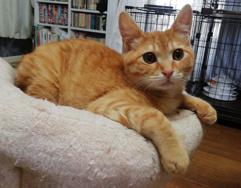 | 特徴(性格など) | 茶トラ・しっぽ短い(保護して数日後に尻尾が半分から取れてしまいました。何らかの理由で傷がついた部分で膿んでしまっていたようです。特に断尾などしませんでしたが傷もきれいに治っています) 甘えん坊です。抱っこするとなかなか降りてくれません。 |
