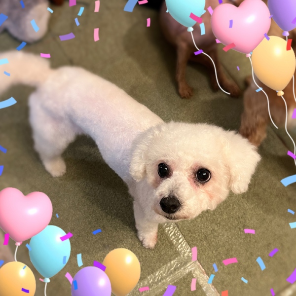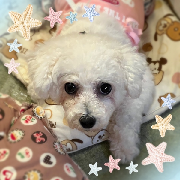 | 特徴(性格など) | シナモン ビションフリーゼの女の子です。 ●特徴(色柄・性格など) 【カラー】 ホワイト 【体重】 5.9kg 【性格】 人が大好きでいつもそばにいます。 フレンドリーで他のわんことも仲良く過ごせます。 ビションらしく走ったり、他のわんこを遊びに誘ったりする元気な姿もあります。 【ご飯】 現在はドライフードに手作りをトッピングしてあげています。食欲旺盛です。 【お散歩】 練習中です。 前を他犬や人が歩くと、追いかけます。 【お留守番】 フリーで他のわんこ達と問題なく過ごしています。 【トイレ】 練習中です 【その他】 避妊手術、歯科処置が済みました。 ●土曜の午後、日曜祝日であれば本校でお見合い可能です。 2024年10月23日に保護。 ネーミングはスパイス&ハーブシリーズ2024です。 |