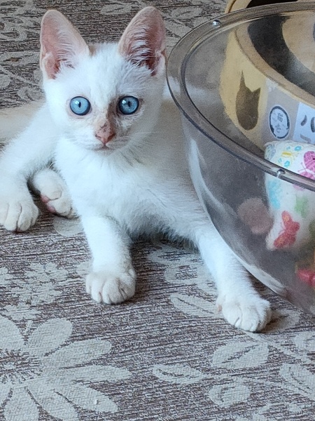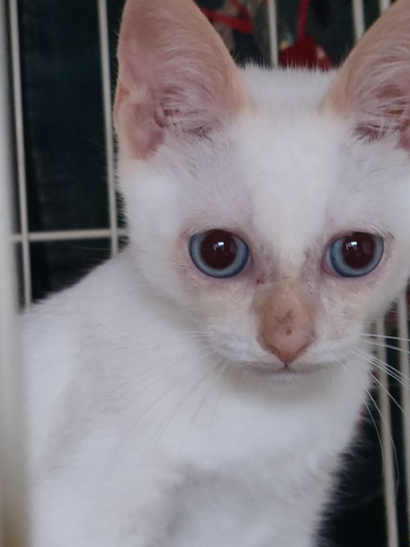 | 特徴(性格など) | 耳と尻尾が笹かま色でそれ以外は 真っ白! 元気ハツラツ! おもちゃ大好き! ウィルス検査は陰性! |