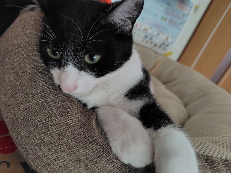 | 特徴(性格など) | 少しビビりな所もありますが、基本穏やかでマイペースな子です。 大人猫さんに甘えたいタイプらしく、性格にもよりますが、先住猫さんがいるお家、大歓迎です! |