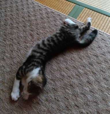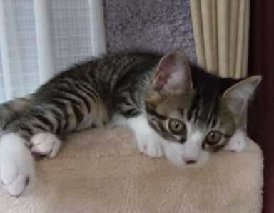 | 里親募集する理由 | 会員が市内の道を「猫いないか」と注意して車で走っていたところ、 路肩に子猫を見つけました。 すぐに駆け付けたところ、輝くような可愛い子が。 初期治療のために病院に行くと後ろ足がだらんとして。 どうやら骨折してしまい、お母さんや兄弟とはぐれてしまったようなのです。 1匹で心細かったことと思います。 左大腿骨複雑骨折とその部位の皮膚剥離縫合。すぐに手術をして、足は無事に治りました。 保護して2か月になりますが、7月半ばに足を固定していたピンを取り、 骨折も無かったかのように、元気に飛び跳ねています。 とても人懐っこく、猫先輩にも慕われるかわいい子です。 元気に走りたい願望があり、超可愛い猫ちゃんです。 そして電気?を消すと「もう寝るのね」って静かに一緒に寝てくれます。 食事もしっかり食べ、うんちもおしっこも毎日しっかり出て育てやすい猫ちゃんで〜す |