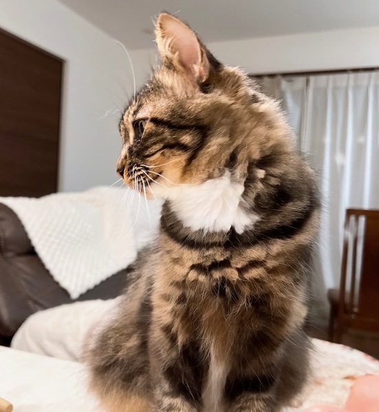 | 特徴(性格など) | ❤️超甘えん坊人が大好きなもふちゃん❤️ ?超甘えん坊です 我が家で1番甘えん坊な猫です。 触ってアピールでニャーと可愛い声で鳴いて、人が手を出すと頭をツンとしてからはスリスリゴロゴロが止まりません。 ?触られるの大好きです とにかく人に触ってほしいようで、どの猫よりも1番人間の近くに常にいます。 抱っこは苦手ですが、人とくっついて寄り添う事は出来ます。 ?基本は大人しいです。 1日の大半は人の近くで座っているか、ソファーでゆったり過ごしていますが合わない猫だと自分から威嚇したりもします。 ?長毛種、キジ白、足元は白い模様です。 尻尾はまっすぐで毛は長くとてもゴージャスです。 |
