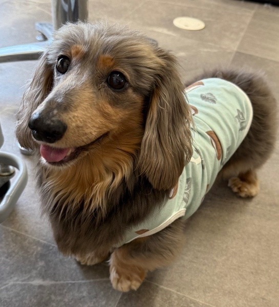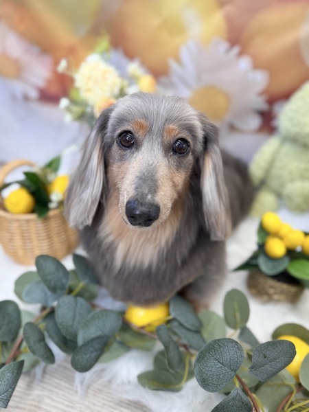 | 特徴(性格など) | ミニチュアダックスフンドのシルバーダップルカラー。珍しい色です。 少し人見知りですが可愛い子です。 |