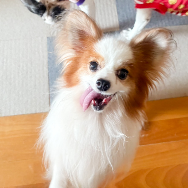 | 特徴(性格など) | 名前:トーラス(♂) 犬種:パピヨン 年齢:8歳くらい 体重:3kg 性格:少し怖がりの時もありますが、基本的に明るい性格です♪他犬にもしっぽフリフリで近寄って行ったり好奇心旺盛です。 体調:健康ですが、うんちに血が少し混じります。通院しておりましたが、元気いっぱいなので様子見てます。食事で変化あるのか療法食を試しています。両足パテラあります。 トイレ:トイレシートの認識はありますが、練習中です。 留守番:基本人間が外出する時はケージで賢く待てます。 散歩:全く歩かないところからスタートし、今やスタスタ歩く時も増えてきました。だんだん歩ける距離も伸ばしてます! 預かりから一言:好奇心旺盛でまだまだ元気いっぱいの男の子。この人だと決めた人にはピッタリくっついて行って甘えるところも健気で愛くるしいです。食べることも大好きで、両足で立ち上がりちょーだいの舞をするのもとってもかわいいです♪人にも犬にも友好的でお家にいてるとほんわか癒し系です。 |