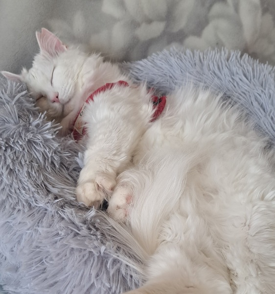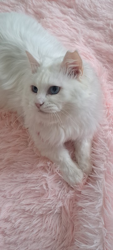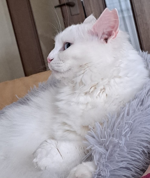 | 特徴(性格など) | 真っ白で長毛、瞳はブルーです 人間大好きでいつも一緒にいたい子です |