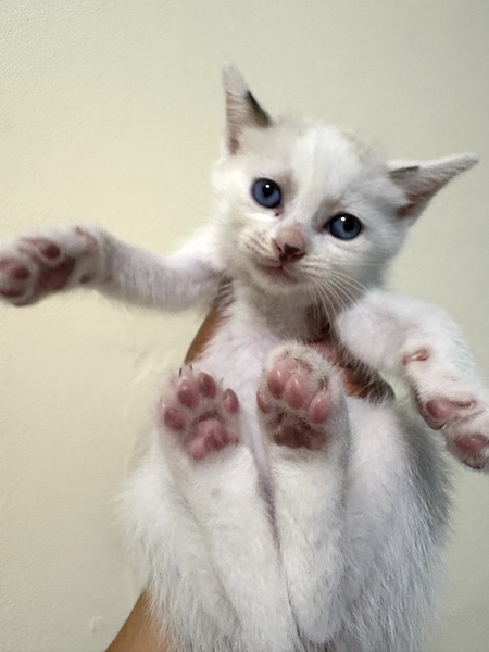 | 特徴(性格など) | 現在体重518g (7/28時点) ノミダニ取りシャンプー済み 検便の結果お腹に虫がいましたので、もう少し体重が増えてからでないと駆虫薬が使えないため、体重が増えるのを待って投与いたします。(その他治療費のうちの1500円が駆虫代となります) 離乳食をスタートさせ、しっかり食べられるようになってきました。 誕生日がこの子はわかっていて、2025年6月17日です。 母猫の避妊手術の際に、エイズ白血病検査を実施いたしました。 母猫はエイズ、白血病共に陰性です。 トイレトレーニング済み・甘噛みもできます。 また、今、子猫同士で過ごすことが大切な時期です。 現在生後6週程度ですので、8月17日以降、駆虫薬投与後の譲渡を予定しております。 |