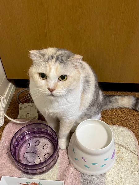 | 特徴(性格など) | パステルカラーのミケ 大人しく手のかからない子ですが好き嫌いはハッキリしていて 1匹飼いの方が向いているかもしれません。 避妊は問診だけで診てもらった結果傷がないのでもしかしたらしていないかも、との事でした。もっと詳しい検査をしてみなければわかりませんが、発情期のような素振りは一切ありません。 |