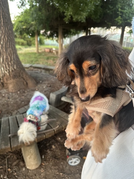 | 特徴(性格など) | 【名前】 ノニ ♀ 【年齢】5歳位 【犬種】ミニチュアダックスフンド ブラックタン 【体重】3.6キロ(2025.7現在) 【性格】とても甘えん坊で子犬のようないたずらをします。 【吠え】ほとんど吠えません。 【散歩】練習中。 【トイレ】成功率80%。 【健康状態】生まれつき全盲です 【希望する条件】全盲でも普通に生活できます。物にぶつかる事もなくごはんもしっかり食べます。全盲ということを理解して下さる方希望です。 【適した飼育環境】 ・初めて犬を飼う ○ ・先住犬がいる 〇 ・集合住宅 〇 ・お留守番が長い △ ・高齢者がいる ○ ・乳幼児・子供がいる △(小学高学年以上を希望します) お申し込みはこちら↓ https://mint-dog.jimdofree.com/ |