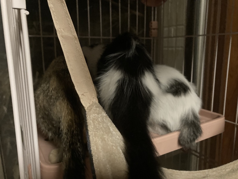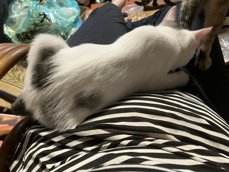 | 特徴(性格など) | 最初は灰白でしたが白黒になってきました… シッポは短いですがサバトラ柄。2段階鍵しっぽです。 ゴロゴロすぐお膝に乗って甘えてくる子です。 が…最近マタタビ入りのネズミのぬいぐるみが気に入ってあまり遊んでくれません… 一番ぽっちゃりしてたから運動するのはいい事にだけど… |