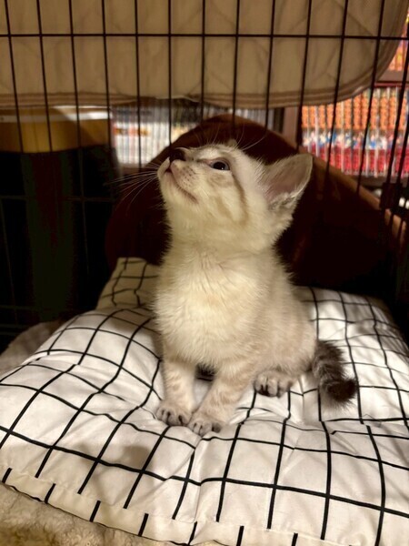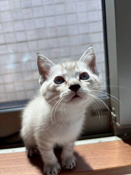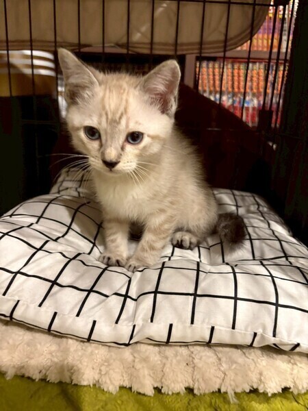 | 特徴(性格など) | ☆名前 ひなた ☆性別 男の子 ☆年齢 0歳2ヶ月 ☆模様 シャムトラ ☆現在所在地 茨城県神栖市 ☆譲渡対象地域 茨城県 千葉県 東京都 (幼齢の為、移動の負担を考え預かり宅から2時間程度の範囲の方) ☆避妊去勢手術 未 ☆ワクチン 未 ☆エイズFIV 陰性 ☆白血病FeLV 陰性 ☆単身者募集 不可 ☆高齢者募集 不可 ▶︎性格 すごく元気で、常に遊んでいて、疲れたら寝ます。猫のハンモックが好きでよくそこで寝てます。少しビビリです ▶︎家の中での様子 1番食欲旺盛で、兄弟の猫ちゃんたちが残した分も最後まで綺麗に食べてます。 音のなるおもちゃが好きでボールを転がすと追っかけてます。ちょっと高い場所が好きなようです! ▶︎ご飯 現在は、幼齢のため1日五回に分けてご飯をあげてます。 ご飯を作っていると兄弟みんなで〝にゃーにゃー”ないてます♪ ▶︎排泄 トイレ○ ☆健康状態 良好 ☆体重 925g ☆マイクロチップ装着 未 ☆今後の医療措置 去勢避妊手術 ワクチン2回目 マイクロチップ装着 |