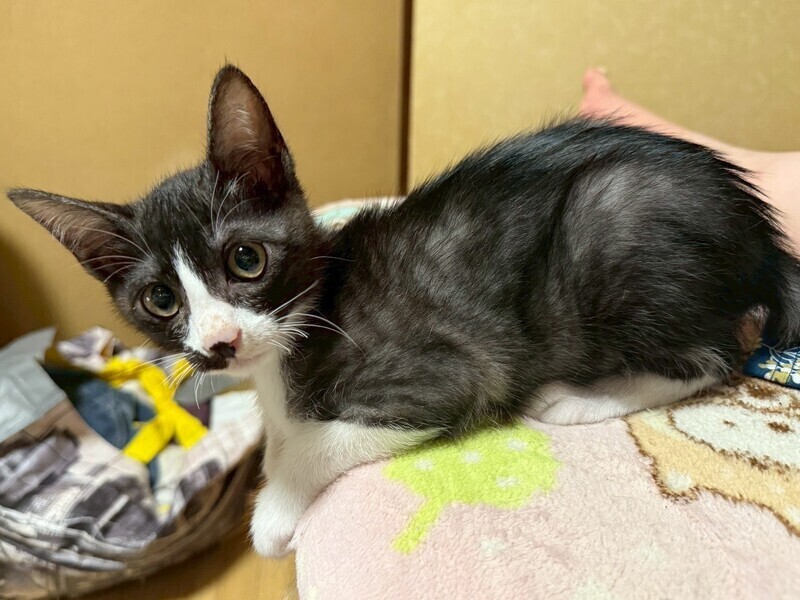 | 特徴(性格など) | 少しだけ人見知りしますが、ちゅーるや猫じゃらしであっという間に緊張がほぐれます。 慣れてくると、抱っこされるとゴロゴロ喉を鳴らして甘えてきます。 猫じゃらしが大好きでハイジャンプを披露してくれます。 兄弟のゆうひととても仲が良いので一緒にお迎えくださる方希望。 または年の近い先住猫さんがいるお家。 まだ子猫のためお留守番は短め(4〜6時間程度)希望です。 健康状態は良好です。 エイズ 陰性 白血病 陰性 |