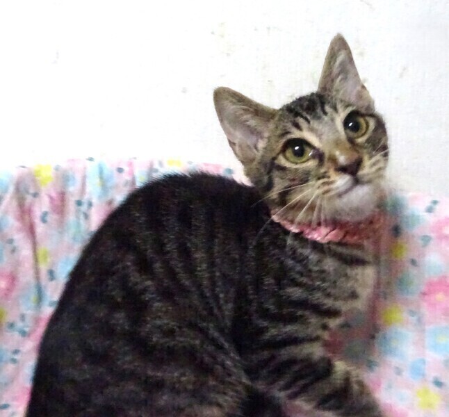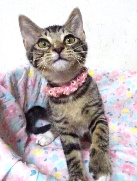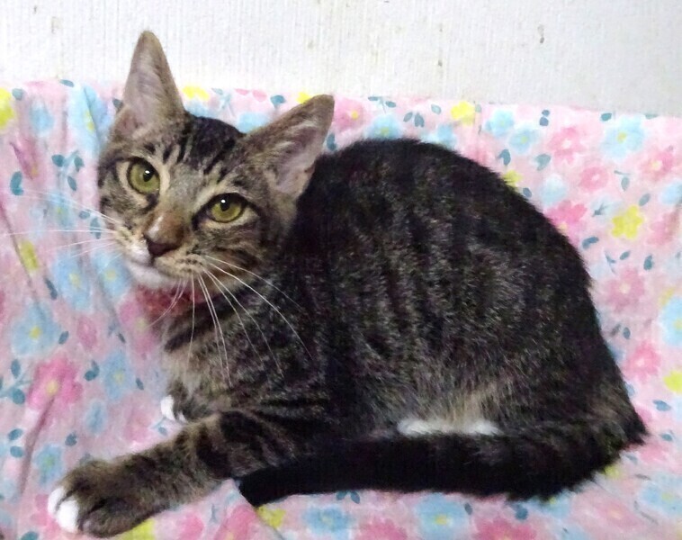 | 特徴(性格など) | 仮名: 杏音(あのん)ちゃん、メス 毛色: キジトラ、手先が白 性格: 個性ははっきりとわかりませんが、母猫が人に懐いていないため、人から隠して子育てしていましたで、人見知りな兄妹で怖がりです。 保護時は小さいながら、激しく威嚇していましたが、いまは、威嚇なく抱っこ出来、爪切り、薬は大丈夫です。大勢の人は怖いようで、譲渡会などではビビっています。兄妹(あのん、りおん、)と一緒のご縁があると嬉しいですが、模様が似ているので別々でも構いません。 よくプロレスしたり、活発に遊んでいます。 大人猫との接触がないのでうまく付き合えるかわかっていません。 ご飯やおやつが好きなので、その時ばかりは大騒ぎして寄ってきます。 じゃらしも好きです。 お届けは千葉県内で千葉市幕張から車で1時間圏内が希望です。 検便済 駆虫済 ワクチン済 猫エイズ・白血病ウィルス検査は共に陰性です |