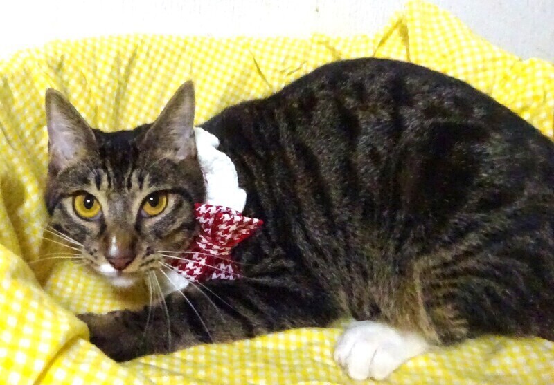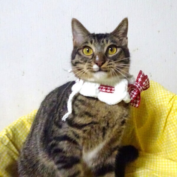 | 特徴(性格など) | 仮名: 杏音(あのん)ちゃん、メス 毛色: キジトラ、手先が白 性格: 個性ははっきりとわかりませんが、母猫が人に懐いていないため、人から隠して子育てしていましたで、人見知りな兄妹で怖がりです。 保護時は小さいながら、激しく威嚇していましたが、いまは、威嚇なく抱っこ出来、爪切り、薬は大丈夫です。大勢の人は怖いようで、譲渡会などではビビっています。兄妹(あのん、りおん、)と一緒のご縁があると嬉しいですが、模様が似ているので別々でも構いません。 よくプロレスしたり、活発に遊んでいます。 大人猫との接触がないのでうまく付き合えるかわかっていません。 ご飯やおやつが好きなので、その時ばかりは大騒ぎして寄ってきます。 じゃらしも好きです。 お届けは千葉県内で千葉市幕張から車で1時間圏内が希望です。 検便済 駆虫済 ワクチン済 避妊手術済 猫エイズ・白血病ウィルス検査は共に陰性です |