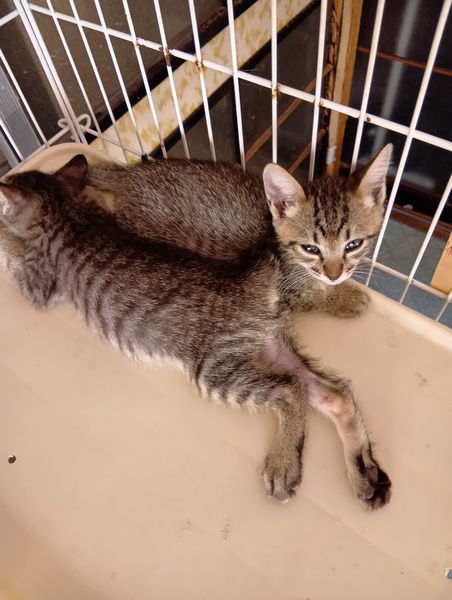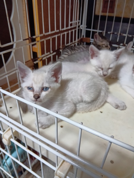 | 特徴(性格など) | 白にグレーが混じった子が2匹、キジトラの子がが3匹です | ||