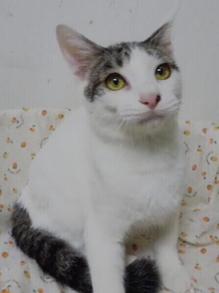 | 特徴(性格など) | 仮名: 穂(みのり)くん、オス 毛色: 白キジ 性格: 個性ははっきりとまだわかりませんが、人との接触がないまま保護したので、人馴れしていなくて怖がりだったので保護時は威嚇していました。今は、威嚇なく抱っこ出来ます。 爪切りOK ご飯やおやつが好きなので、催促の時はケージの壁に張り付いて待っています。兄弟のみやびくんと仲良しですが、おやつの時には、我さきにいきますので、みやびくんが出遅れます。良い組み合わせになっています。 出来れば一緒のご縁があると嬉しいです。 大人猫とは接触はないので、うまくつきあえるかわかっていません。 大勢のひとは苦手のようです。お届けは千葉県内で千葉市幕張から車で1時間圏内が希望です。 検便済 駆虫済 ワクチン済 猫エイズ・白血病ウィルス検査は共に陰性です |