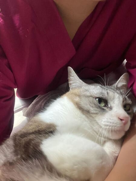 | 特徴(性格など) | すりすりゴロゴロが大好きな、とっても甘えん坊な男の子ゲンタくんです 撫でてもらうことが何より幸せで、きっと毎日たくさんの愛情表現で癒してくれると思います! 7歳という年齢ながら、まだまだ元気いっぱいです! とにかく人が大好きで、人を見つけると一番に寄ってきます。お掃除の邪魔が毎日止まりません笑 むっちりもっちり、撫でるとすぐにお腹を見せてくれます! 凛々しいキジ白模様のハンサムボーイです✨ 追記:猫風邪が治ったので現在は保護猫室に出てきております!YouTubeライブ配信で普段の様子が見られるので是非ご覧ください! 当院で健康診断・各種検査(血液・便・エイズ白血病検査)を実施済み。エイズ・白血病検査は陰性で安心です。現在軽いねこ風邪の治療中ですが、3種混合ワクチン接種、去勢手術、マイクロチップ装着は完了しています。 |