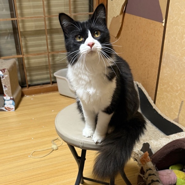 | 特徴(性格など) | 元シャーシャー兄弟でしたが、徐々に変化中。 まだ人に警戒する事があり、近寄ると逃げてしまいますが、人には興味が出てきたらしく、追わなければ割と側でくつろぐ姿も見せるようになって来ました。可愛い声も聞かせてくれます。ちゅーる大好き。オモチャ大好き!! まだまだ発展途上中!今後に期待!! 身体はそこまで毛が長くないのに、シッポだけフサフサです♡ まだ人馴れ修行中なので、ハチくんのペースで見守って下さるお家。ミーナちゃんととても仲良しなので、一緒にお迎えいただけるととても安心します。 健康状態は良好です。 エイズ 陰性 白血病 陰性 |